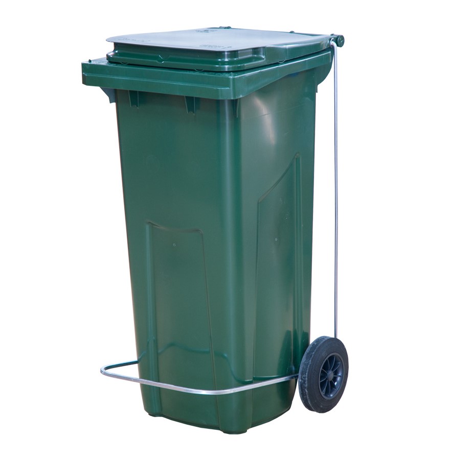 Бак для мусора 120 л. 55*45*96 см. зеленый, с крышкой на колёсах с педалью /1/