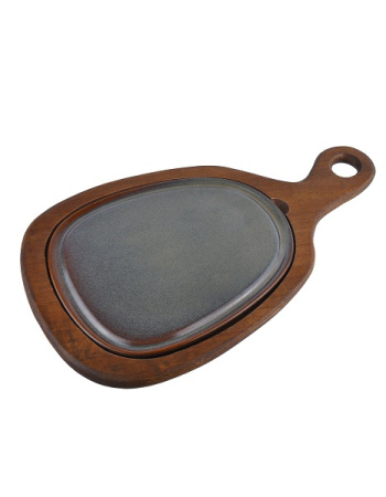 Блюдо для подачи 24,5*20,5 см. h=2,5 см. с ручкой на дерев. подставке, фарфор серия Глоир Bonna /1/6/