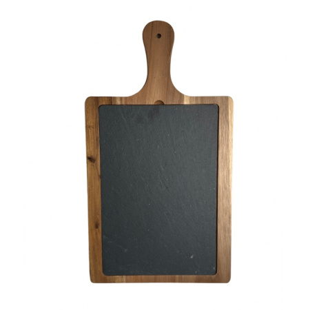 Блюдо для подачи прямоуг. 45*25 см. h=1,4 см. черное, сланец, на дерев. подставке с ручкой MGprof (WB-004) /1/10/