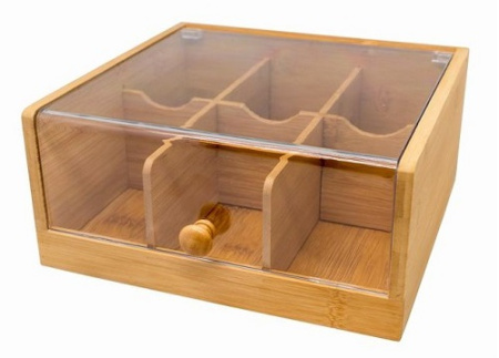 Контейнер для пакетиков чая 6 отд. 22*21*10 см. бамбук с пластик. прозрачной крышкой VB /1/