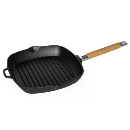 Сковорода-гриль 28*28 см. h=4,5 см. чугун. рифлен. со съемн дерев. ручкой /1/8/