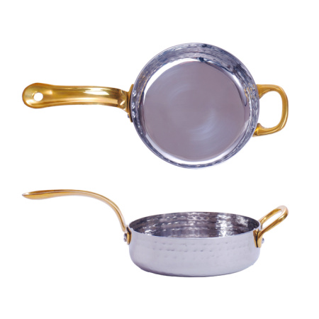 Сковорода порц. d=12 см. h=3,5 см. 0,4 л. нерж. глубокая с 2 ручками латунь MGsteel /1/36/