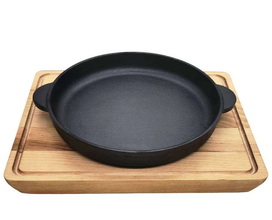 Сковорода порц. d=16 см. h=2,5 см. чугун. с 2 ручками на дерев. подставке /1/12/